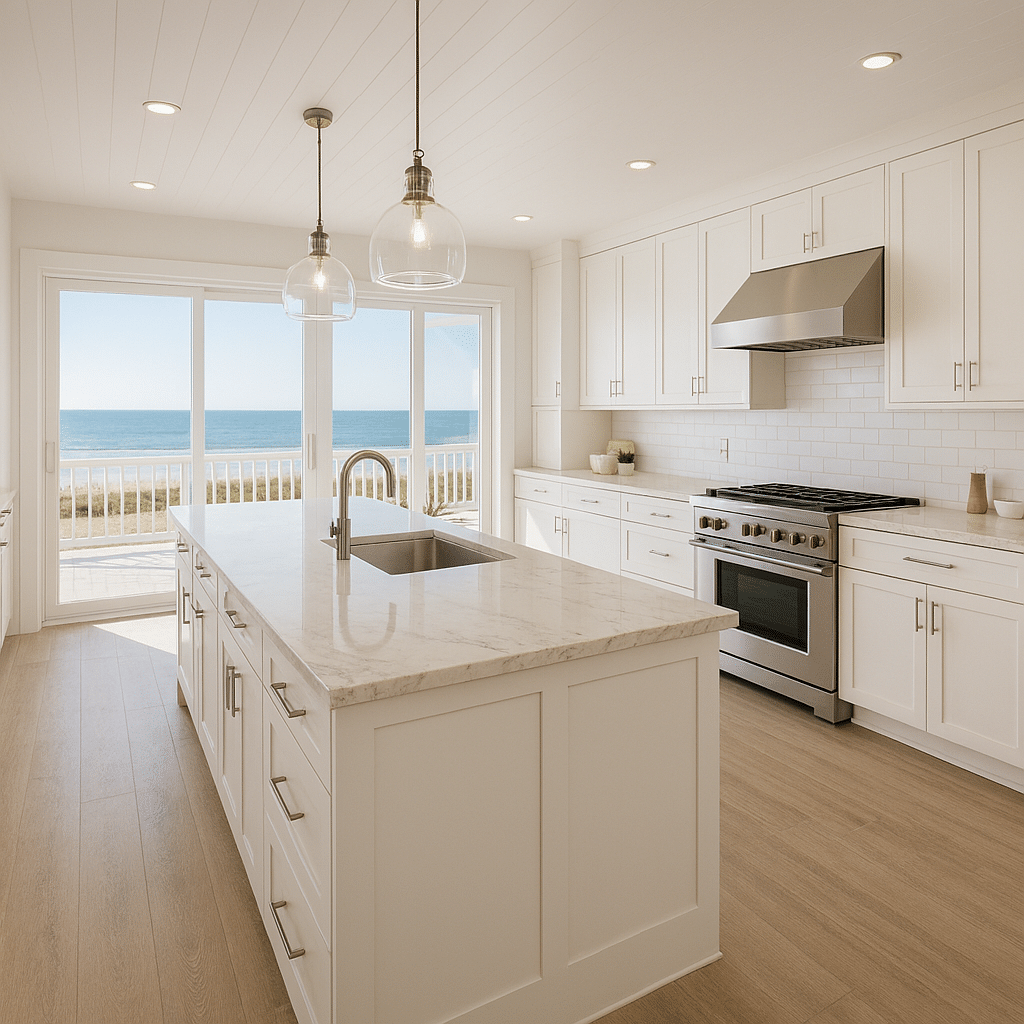 Southport is known for its coastal charm, but many older homes in the area still feature dated layouts, worn cabinets, and countertops that no longer meet the needs of today’s families. The homeowners on this project wanted a modern kitchen that blended clean lines, durable materials, and a bright, open feel—something that would complement the coastal lifestyle while offering the performance needed for everyday cooking, entertaining, and family gatherings.
